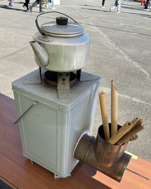 会場では防災用品の展示もあり、廃材などから自作した簡易ストーブなどがありました。